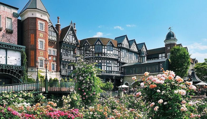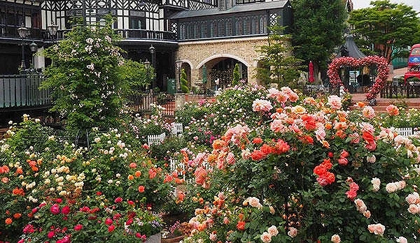 都铎式建筑群、红砖步道、喷水池与120种玫瑰花园,营造浓厚欧洲古典氛围。每个角落都是完美拍照场景,让人不出国也能感受欧洲风情。