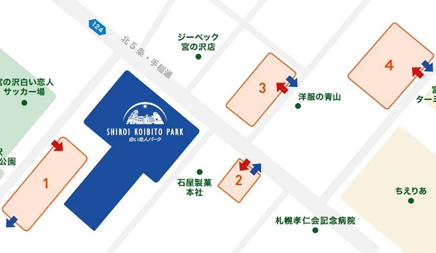 自驾开车从札樽自动车道「札幌西交流道(IC)」出口下高速后,车程约1分钟即可抵达白色恋人公园。导航可输入 MapCode「9 602 298*66」。