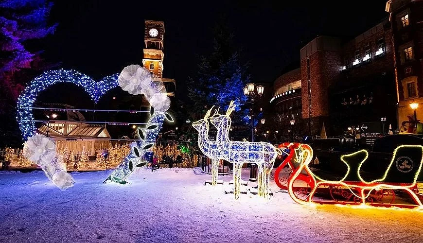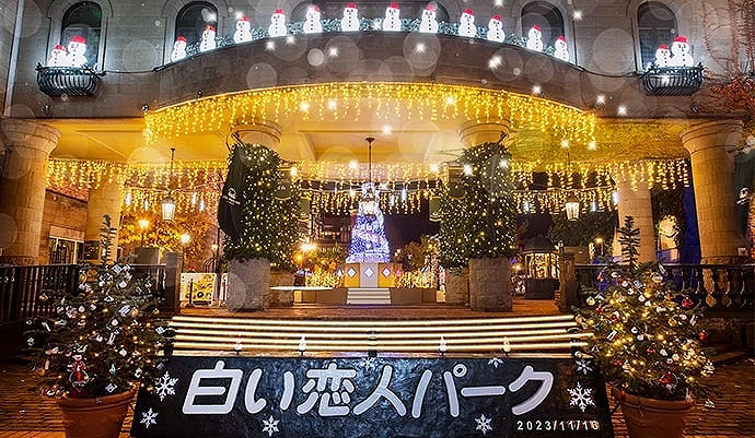 「白色恋人公园」每年冬季都会举办浪漫灯光秀,园区内不仅布满闪耀的灯饰,还设有多种互动体验,非常适合情侣与家庭前来约会或散步。2025年主题为「Blooming Snow Fantasy」,以象征幸福的白色钟塔为中心,整个公园被银白灯海包围,璀璨灯光与浪漫音乐交织,化身为银白色的童话世界,令人流连忘返。