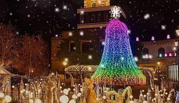 冬季点灯期间,白色恋人公园可说是浪漫指数满点!从情侣必拍「心形灯饰墙」、被LED灯包围的「庭园灯饰步道」到搭配投影效果的「欧式建筑外墙」,处处都闪耀着梦幻光影。此外,巨型圣诞树也为园区增添浓厚节庆氛围。每逢15分与45分,庭园内钟塔还会变换成彩虹色光影,为冬夜增添浪漫惊喜!也别错过2025年全新登场的「甜蜜花园」,在欣赏灯饰的同时被花香包围,彷佛置身于发光花海中,绝对会是一段难忘的冬季体验。