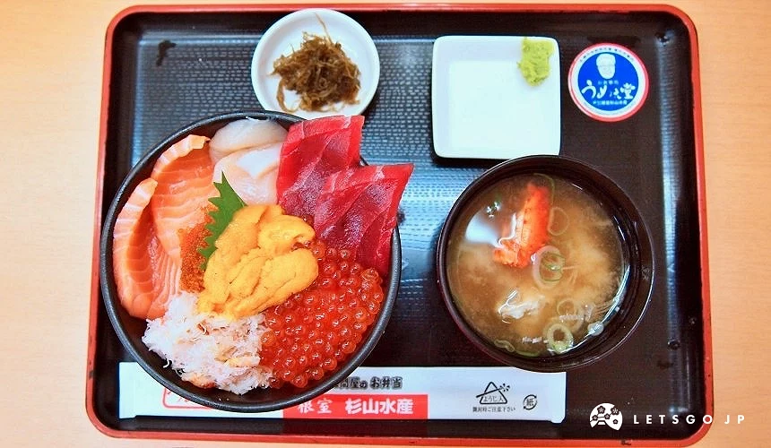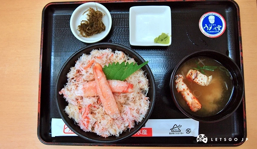 「螃蟹盖饭」也是美味堂的必吃料理。一端上桌的第一眼,就能看到两条大大的螃蟹脚豪迈横杠在碗上,底下铺满看不见饭的蟹肉,料给得超大方,喜欢螃蟹的人绝对会开心不已!这些螃蟹肉都是在根室的水产工厂先处理好再运送到这里的,自家的工厂出品,确保锁住了螃蟹肉的新鲜,又能做到平价的价钱,适合预算较有限但又想好好品尝螃蟹美味的人。