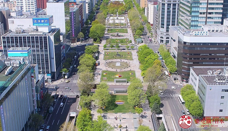 想以最佳角度仰望札幌电视塔,毫无疑问当然是到「大通公园」罗!东西向绵延12个街区的大通公园内,能够拍摄到由远到近不同视角的电视塔,搭配春夏的繁花绿草、秋季的红黄叶、冬天的白雪皑皑,都能衬托出电视塔的不同风情!
