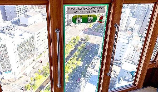 「恐怖窗户」的设计为东南侧的三块玻璃从地板延伸至天花板均为单片玻璃。可以体验到开阔的视野、充足的采光以及外倾的窗户,是一个深受大家期待又害怕的观景点。