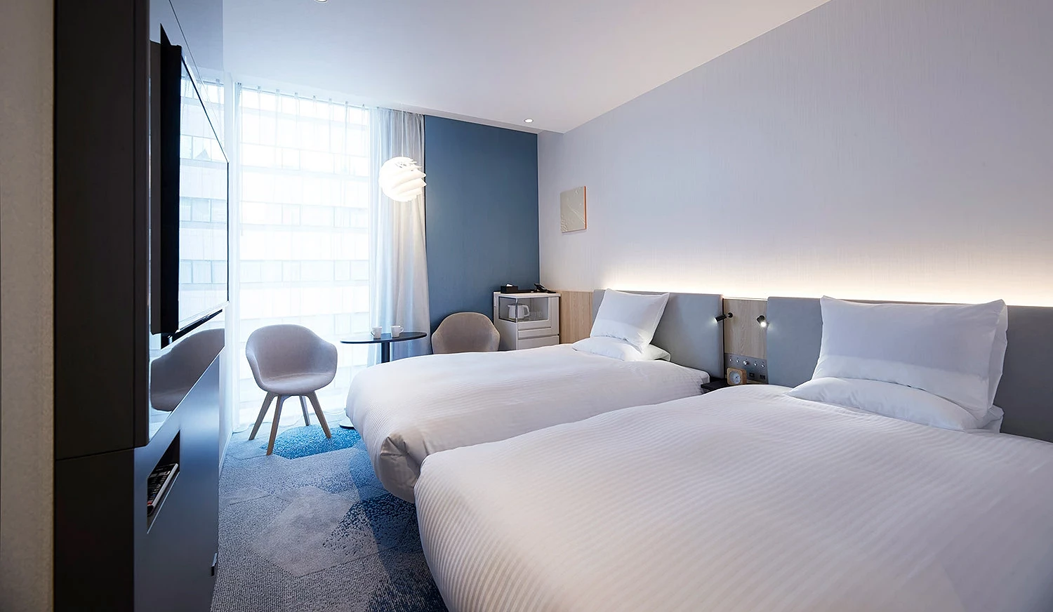「札幌京王普雷利亚饭店」提供多样化客房类型,包括6种双床房型、3种双人大床房型,以及3种三人房型,可以满足各种住宿需求,而且客房内有独立式的洗手间、浴室及厕所,可以避免多人入住的不便。此外,饭店附设大浴场、简单的健身设备、洗衣机与旅客专用交谊区等,整体来说是 CP 值很高的住宿选择!