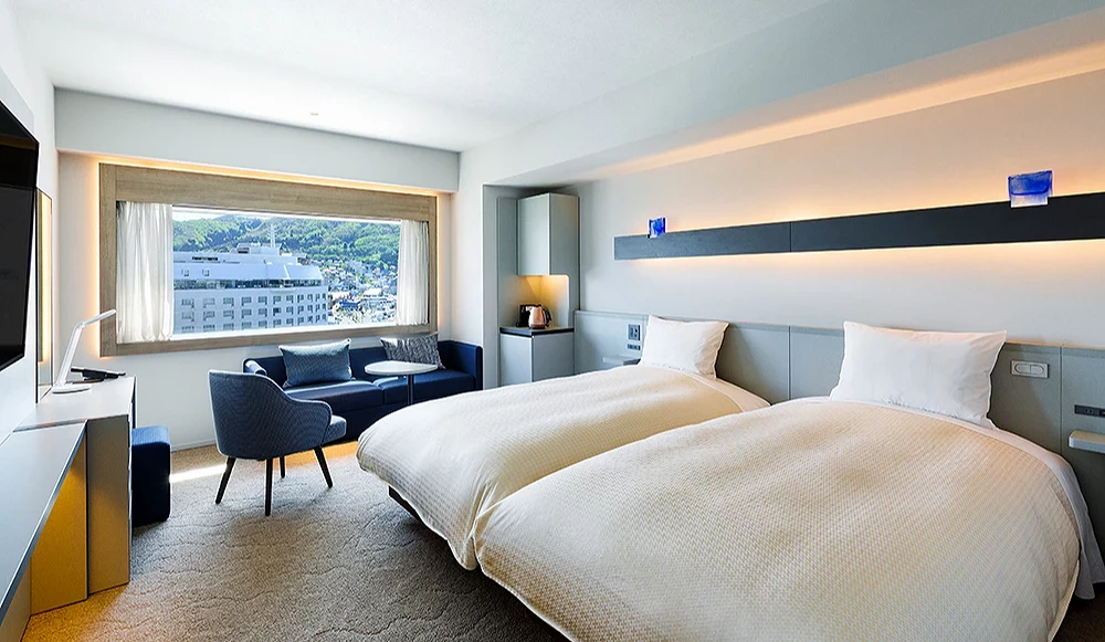 离 JR 函馆站北出口仅数步之遥的「函馆 JR 旅馆」,地理位置无懈可击,对面就是函馆朝市,无论交通或用餐都极为便利。饭店于2020年开业,客房装潢又新又舒适,顶楼还设有大浴场与休憩空间,可以眺望函馆港口美景。