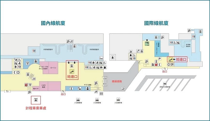 函馆机场 1F 地图,图中标示「计程车乘车处」位置